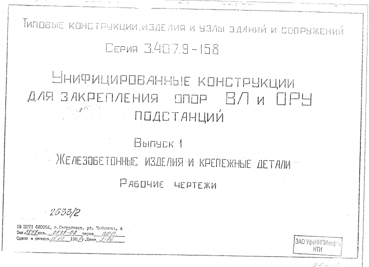 Серия 3.407.9-158 Унифицированные конструкции для закрепления опор ВЛ и ОРУ подстанций