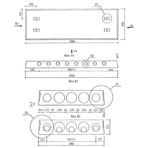 Плиты длиной 2980 мм и шириной 990 мм с арматурой из стали классов  A-III  и Bp-I из тяжелого бетона.