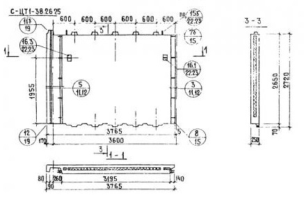 Рассчитать стоимостьПанели стеновые цокольные СЦТ1-38.26.25 (Серия 1.117-12с).