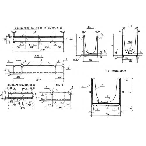 ЛК 597.70.100 Лотки для каналов навозоудаления по серии 3.818.9-2.